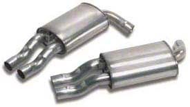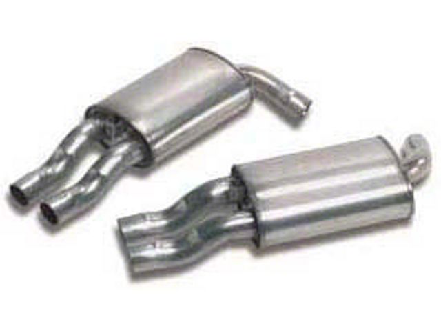 Construction and Appearance. Built from high-quality materials and utilizing modern manufacturing techniques, these mufflers feature a durable aluminized finish. The design mirrors the original layout, complete with a single functional outlet and factory-type brackets that contribute to an OEM-accurate appearance and installation.