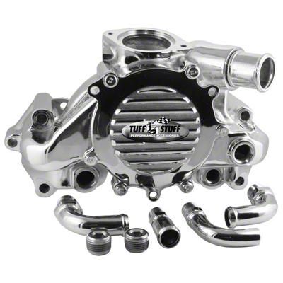 Construction and Appearance. Built from precision-cast aluminum, the pump features a polished finish for a clean, show-ready look. Its durable housing resists corrosion and wear, making it a long-lasting upgrade over the factory LT1 water pump.