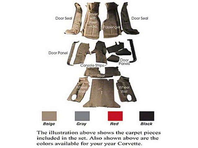 1994-1996 Poly Back carpet sets feature the same hard-rubber backing used by the factory to reduce heat and noise in your Corvette. All carpet sets include molded heel pads, serged bindings and velcro strips to hold the floor mats in place and door panel carpet strips