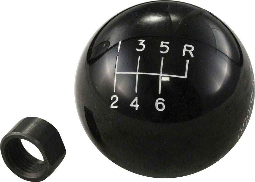 A great knob with a classic feel for your 1997-2014 Corvette, this classic style manual transmission 6-speed ball knob, available from Eckler's Corvette, is made from a high strength plastic material that's sure to last for years and painted with a high-gloss black paint for a great finish. The inlaid shift pattern is 2.25 inches in diameter with a molded-in brass thread insert, with a 9/16"-18 thread size. Jam nut is included. This is a knob that fits any 1997-2004 Corvette like a glove and looks good doing it. As always, remember to trust Eckler's Corvette for all your restoration needs.