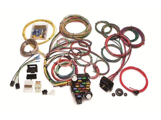 Painless Performance 28-circuit universal muscle car harnesses are a perfect solution to your wiring needs. Designed to fit 1960, 70, or 80s GM, Ford, and Chrysler muscle cars where a bulkhead connector is required. These harnesses use the highest quality thermal-crossed linked (TXL) polyethylene wire rated to 275 degrees at 600 volts--twice the voltage load of standard GPT wire. That's power on demand. Some minor bulkhead modification may be required. Please be sure to check the fitment of this harness, as there may be a more direct fit harness available for your vehicle.