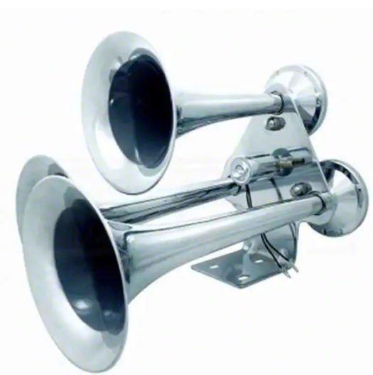 If you want to be heard, then this train horn is for you. This 3 Trumpet Chrome Train Horn, Standard Duty, is just what you're looking for. Made from quality material, with a durable heavy chrome plating, to withstand years of abuse from the elements. This horn has a 145db +- 10db sound output, from 150 PSI max pressure. This horn comes with the 12V heavy duty electric solenoid to aid in installation. Let eveybody know you are on the way, or passing to the left, with this super loud horn. Trust Ecklers for all your accessorie and horn needs!