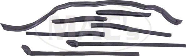 Reproduction convertible top seal kits for 1959 Fairlane are available. Each kit includes front header bow seal, two middle top sections, and two rear top sections, cloth covered like the original. Pillar post rubber seals are sold separately. This is the best quality weatherstrip on the market, proudly manufactured in the usa!