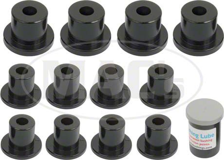 Now you can get a set of Ford Galaxie polyurethane replacement bushings. With these sets, you can get all the bushings you need to convert your rear leaf spring suspension to polyurethane, allowing you to enjoy improved handling and bushing life compared to rubber.Sets include 8 shackle bushings, 4 spring eye bushings, and polybushing lube.