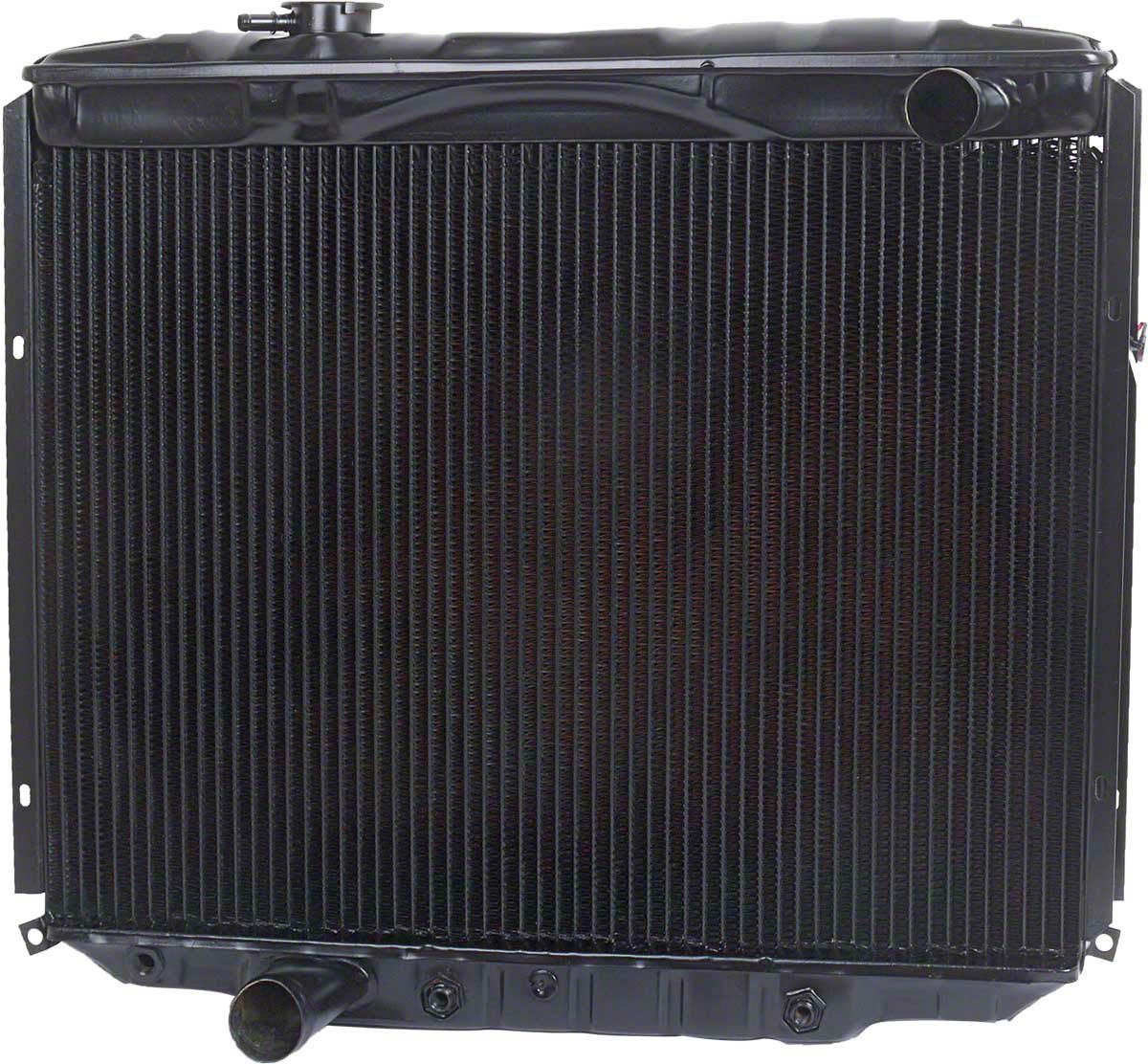 At MAC's Auto Parts, we carry a complete line of radiators for most size 1965-1966 Ford or 1965-1966 Mercury engines that will make your car perform better than ever and look good doing it. For heavy duty applications we offer both 3 and 4 core radiators. All radiators come with a one year warranty against defects in workmanship. 17 3/8 x 23 1/4 x 2 right inlet, left outlet, dessert cooler core equivalent to 4 row. This is a high efficiency 3 core radiator. High efficiency has 3/8" Tube spacing on center. 15% cooling increase, 25% more tubes, 166 tubes total. As always, remember to trust MAC's Auto Parts for all your 1965-1966 Ford or 1965-1966 Mercury restoration needs.