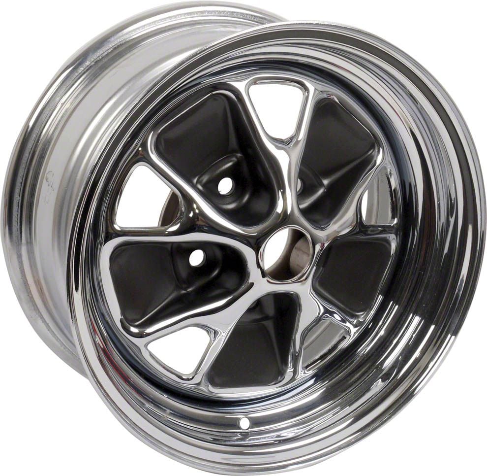 Scott Drake 15X7 Styled Steel Wheel Chrome/Charcoal. This styled Steel wheel offers an economical option for customers wanting the factory look of an original steel wheel. This full chromed wheel with charcoal center offers the classic styled steel look and is a great entry-level option for the daily driver. Center cap not included.