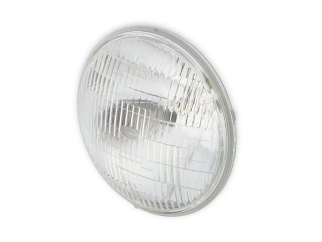 Officially licensed by Ford, these 7” Round Halogen Sealed Beam Headlamps feature authentic Ford markings and upgraded Halogen performance. This is a reproduction of a very desirable and rare version headlamp used on Classic Fords and Mercurys. Over the years Ford offered two FoMoCo script versions: one sand blasted etched logo, and the other a prominent reverse raised FoMoCo logo about 7/8” wide. These are the rare, highly sought reverse raised logo version, which is more attractive and easier to read. NOS Ford bulbs were duplicated in appearance, but improved with Halogen lighting technology. Halogen headlamps produce more than double the lighting power of original Tungsten bulbs. They feature a dual filament bulb with a 50 watt low beam and a 55 watt