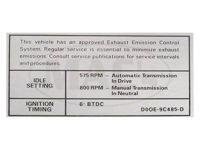 New emission decals are made to exact original specifications. All of our decals were reproduced from original Ford decals in intricate detail and feature correct shape, design, and coloring for the concours restoration. For decals not listed, please contact our sales department.