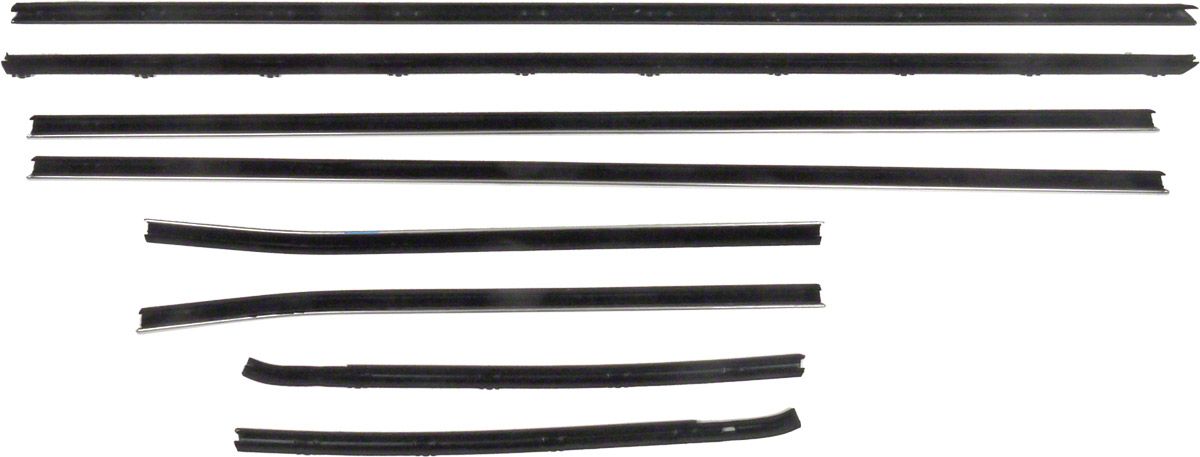 This is the weather stripping that fits in the top edge of your door. All windowfelt kits include outer door piece as well as the inner pieces that attach to the top of your door panel. Manufactured to fit and appear like the original. Sometimes called window fuzzies . Kits that specify without chrome are referring to the wide band of chrome or aluminum offered on some vehicles. Each kit designated without chrome will still have the narrow band of stainless trim on the windowfelt. This kit is for 2 door applications.