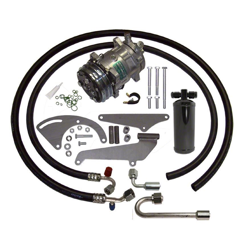 - Compressor Mount Kit designed for a stock Chevy V8 engine with the compressor mounted on the right (passenger) side and a short water pump