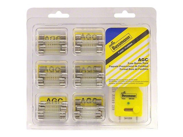 Bussmann AGC Automotive glass fuse bonus pack is perfect for the hobbyist who wants to keep a broad assortment of commonly used AGC fuses on hand