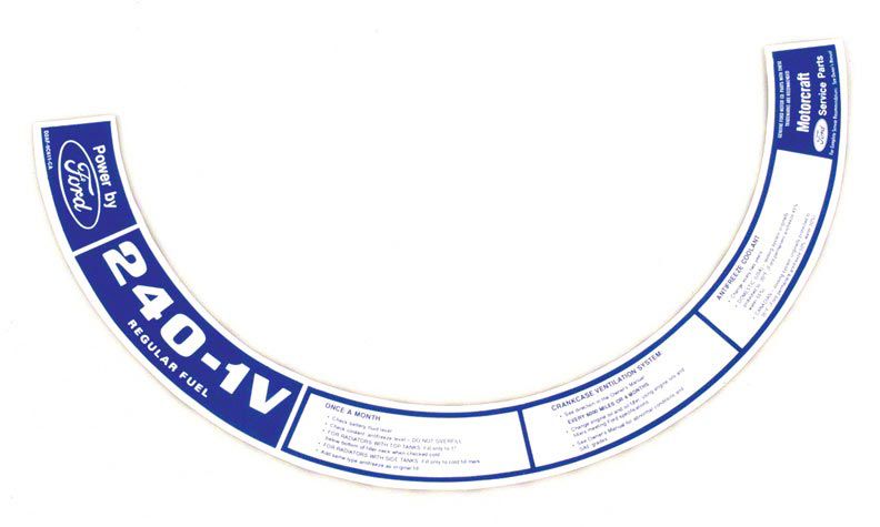 Air Cleaner Decal, 240-1V, Galaxie, 1972