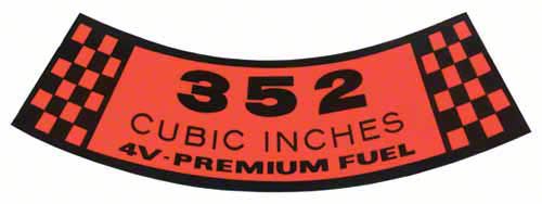 Air Cleaner Decal - 352 Cubic Inches 4V-Premium Fuel - Ford