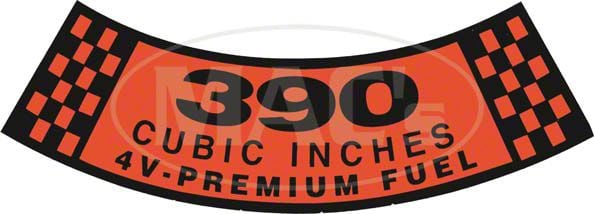 Eckler's no longer carries the Air Cleaner Decal/ 390 4v. Please check out Homefor an updated selection.