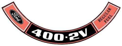 Air Cleaner Decal - 400-2V Regular Fuel - D1AF-9C611-AA - Ford
