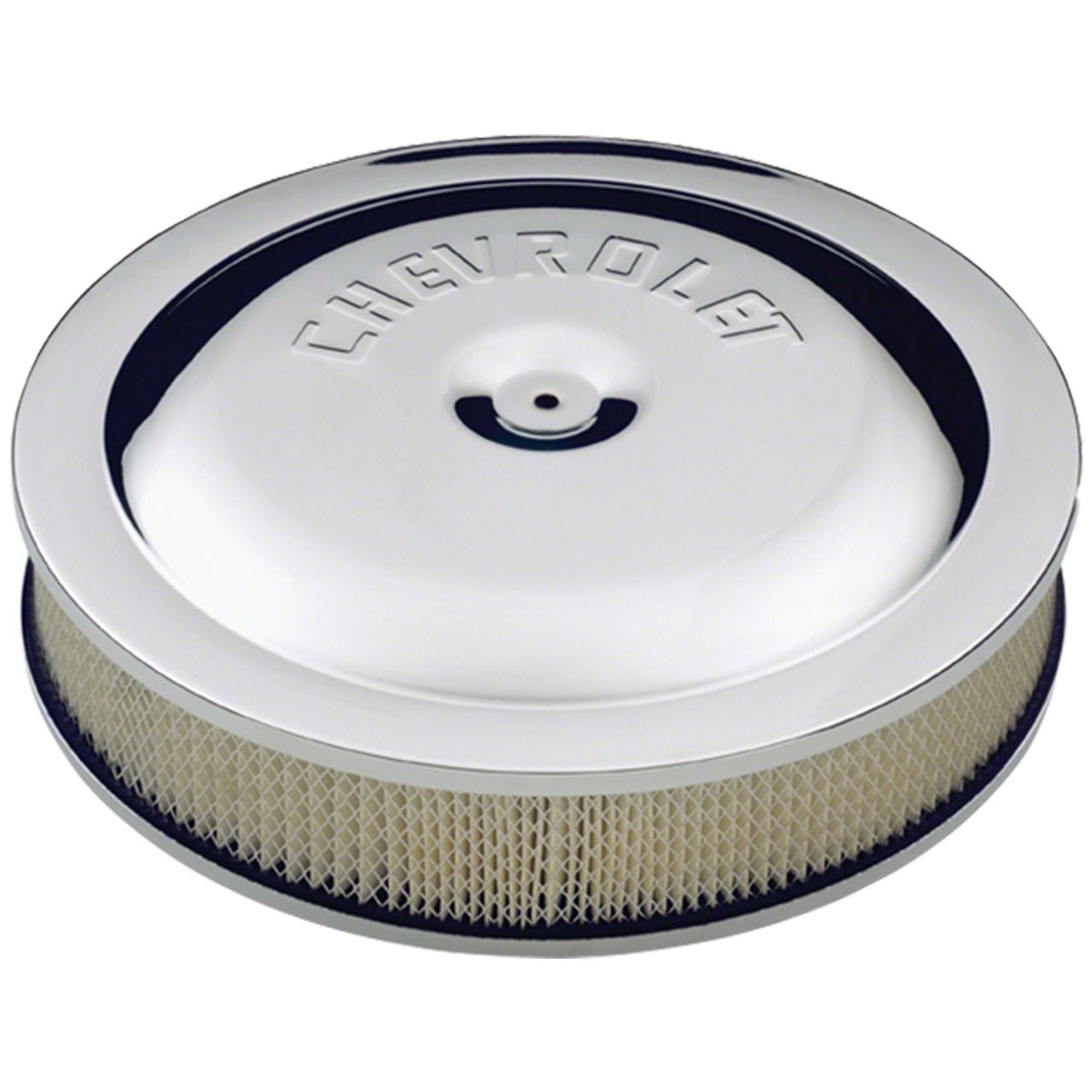 Air Cleaner Kit; Chrome; Embossed Chevy Logo; 14 In. Diameter; With Center Nut
