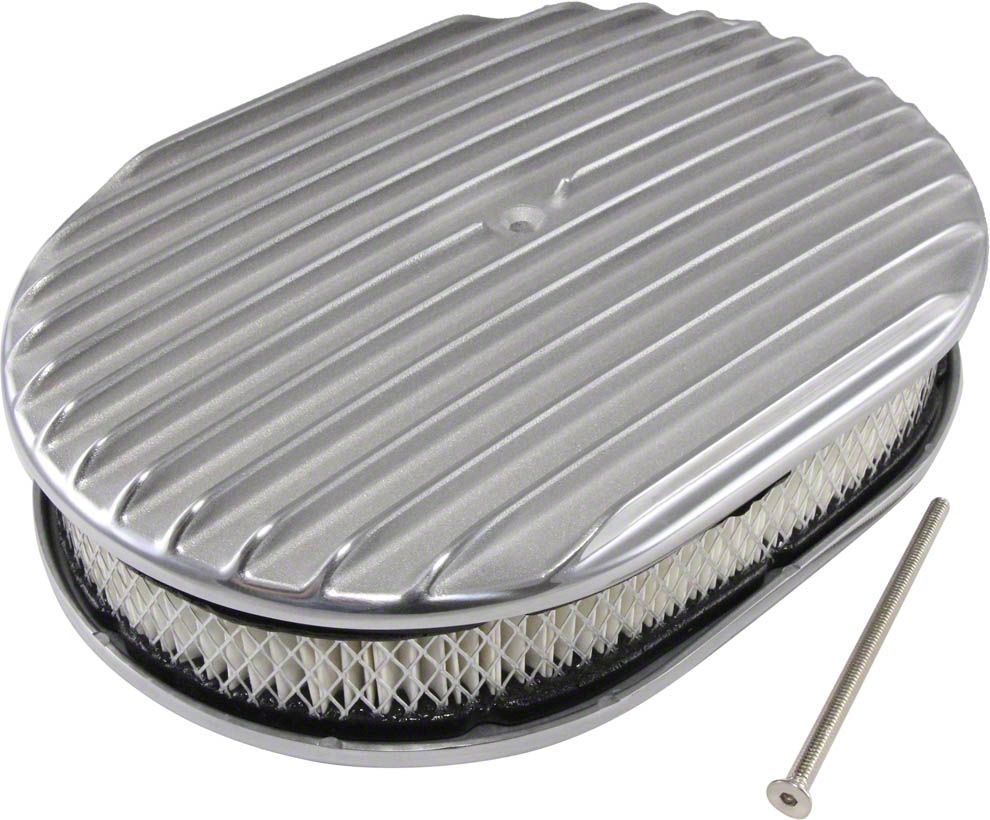 Without a working and effective air filter, harmful particulates such as dust, pollen, and mold can reduce the effectiveness of your 1967-2014 Chevrolet Camaro's heating and air conditioning or even damage the insides of the vehicle itself. The Camaro Air Cleaner, Oval Full Finned Polished Aluminum, 12" for Chevrolet Camaros from 1967, 1968, 1969, 1970, 1971, 1972, 1973, 1974, 1975, 1976, 1977, 1978, 1979, 1980 brought to you by Rick's Camaro, is perfect for your restoration needs and will help lengthen the life cycle of your car. And remember to always trust Rick's Camaro for all