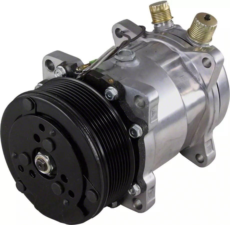 Air Conditioning Compressor, Polished, Sanden 508, Serpentine Belt Pulley, Uses R134A Refrigerant