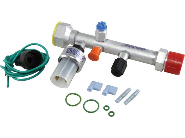 This kit is a must for all vehicles with an original valve. The update includes a pressure cycling switch, o-rings, wiring harness and fitting to replace the original POA valve with ports to attach the oil bleed line and expansion valve equalizer tube.