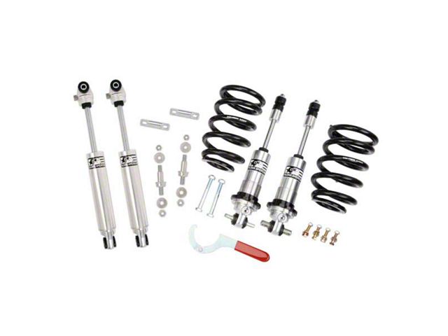 Alden American Front coilovers with rear shocks, Small Block, Kit. Includes 2 front coilovers with 450 lb springs, 2 TrueLine rear, adjustable shocks with hardware. Bolt on. Front and Rear. Made in USA