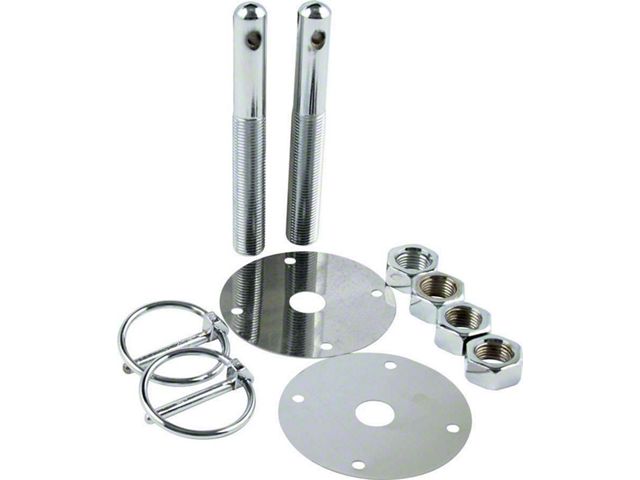 Allstar Performance Steel Hood Pin Kit; Chrome (Universal; Some Adaptation May Be Required)
