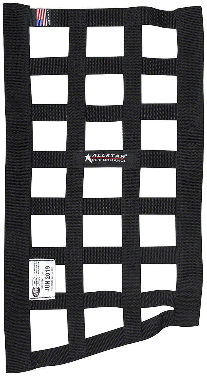Border style window net has built-in vertical sleeves for installing mounting rods to attach net to the chassis. Net is ideal for cages that have been fitted with or updated to funny car style bars around the driver. Net is SFI 27.1 certified.