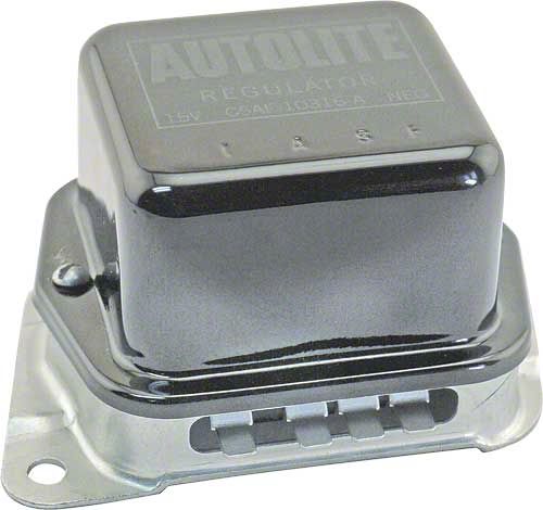 Our reproduction voltage regulators are exact copies of the originals. Painted the correct colors, they feature ink stamped original logos and engineering numbers and have the correct type screws or rivets securing the top to the base. They are rated for use with alternators up to 55 amps. Sorry, the voltage regulator for use with transistor ignition, is not available.