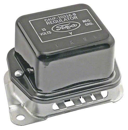 Our reproduction voltage regulators are exact copies of the originals. Painted the correct colors, they feature ink stamped original logos and engineering numbers and have the correct type screws or rivets securing the top to the base. They are rated for use with alternators up to 55 amps. Sorry, the voltage regulator for use with transistor ignition, is not available.