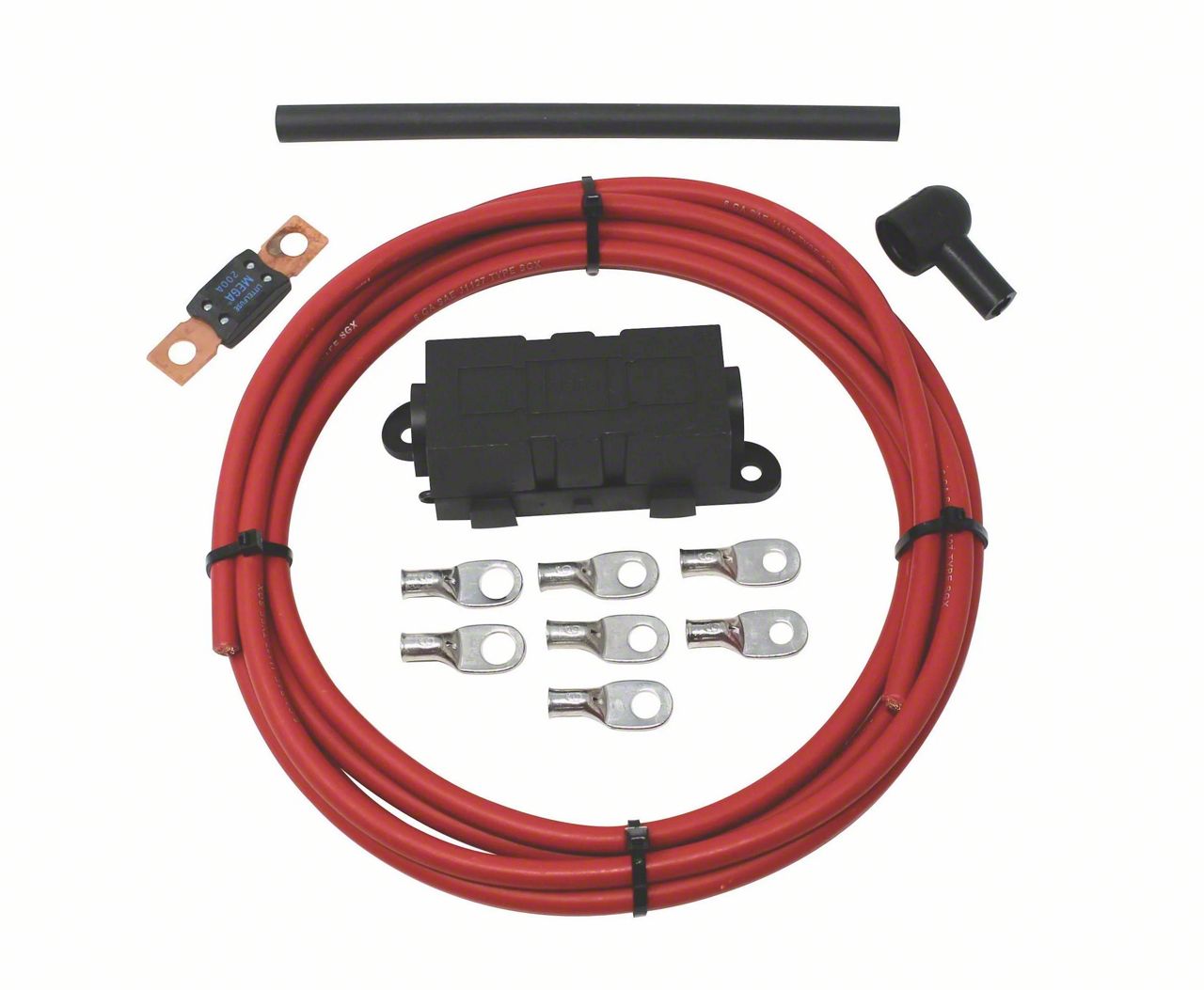 This kit was designed for wiring systems that will be combined with a high output alternator. Each kit comes with 12 feet of 6 gauge charge cable, ring terminals, alternator boot, 200 amp megafuse and shrink tubing. Includes detailed installation instructions.Please verify the recommended charge wire gauge with your alternator manufacture before installing.