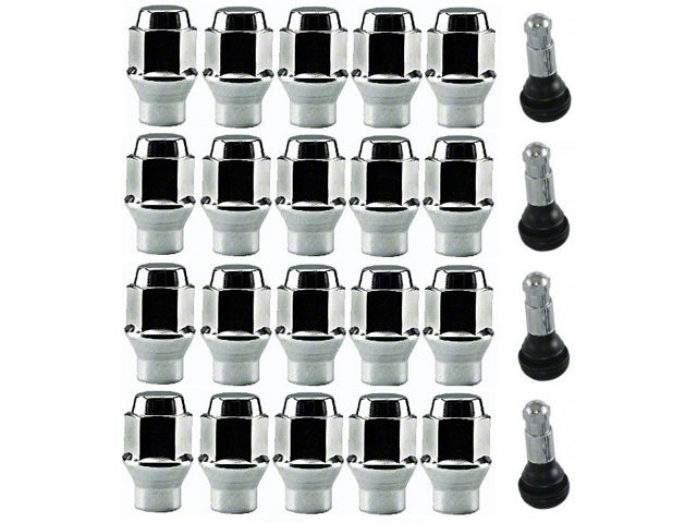 Regular tapered seat lug nuts do work with American Racing Torq-Thrust and Legendary wheels, but due to the added thickness of the aluminum, as compared to original steel wheels, the contact area between the lug nut and threaded stud is reduced. For extra security, or if your ride is making some serious power, this type of lug nut gives you the best of both worlds. They have the 60 degree tapered seat to keep your wheel centered, and a 0.33" long/0.61" wide shank which increases the contact surfaces dramatically. Each one is cold-forged steel for strength, and chrome plated for beauty. You also get four valve stems with chrome caps and decorative sleeves. Even if you don't need them for this installation they are a standard size, so you can use them fo