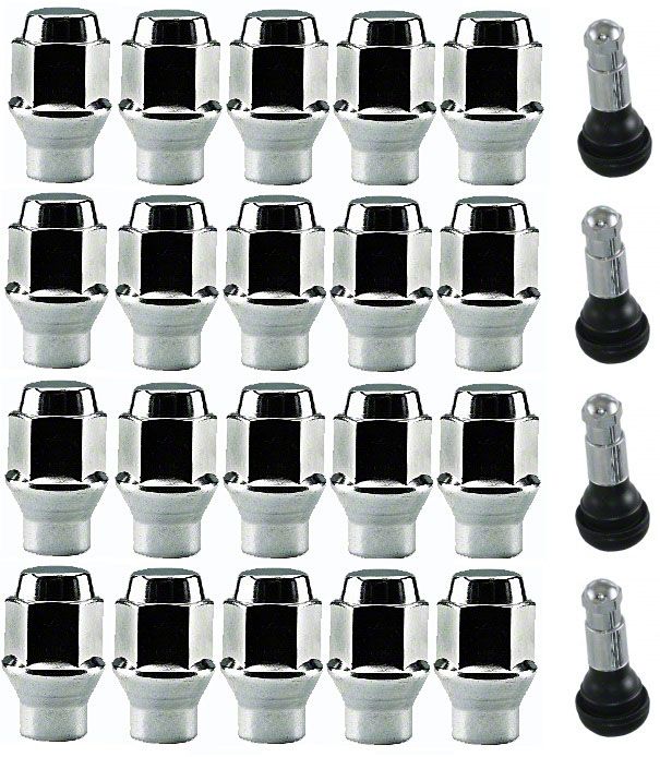Regular tapered seat lug nuts do work with American Racing Torq-Thrust and Legendary wheels, but due to the added thickness of the aluminum, as compared to original steel wheels, the contact area between the lug nut and threaded stud is reduced. For extra security, or if your ride is making some serious power, this type of lug nut gives you the best of both worlds. They have the 60 degree tapered seat to keep your wheel centered, and a 0.33" long/0.61" wide shank which increases the contact surfaces dramatically. Each one is cold-forged steel for strength, and chrome plated for beauty. You also get four valve stems with chrome caps and decorative sleeves. Even if you don't need them for this installation they are a standard size, so you can use them fo