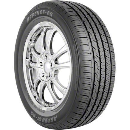 FEATURES AND BENEFITSAll season tractionEnhanced controllabilityLonger lasting tread lifeHigh speed performanceOVERVIEWThe Aspen GT-AS is a performance and high performance, all season tire manufactured for passenger vehicles and SUVs. This model has some touring sizes available as well. Aspen offers a 50,000 mile treadwear warranty with this model.All season traction is promoted with the asymmetric tread design and the durable compound. The all season compound and the asymmetric ribbed tread design work together to boost the dry, wet, and winter weather traction. The sipe and notch placement helps to increase the grip on the road surface with extra biting edges, while the compound maintains the flexibility of its rubber elements. The circumferential grooves prevent hydroplaning in wet weather conditions, promoting a safer driving experience in versatile weather conditions.The ribbed tread design maintains the surface contact at all times. As a result, the tire is able to increase the steering responsiveness and driving stability. In this manner, the tire promotes a quick and precise steering response to the driver’s commands, while the structure is secured against the driving pressure affecting the tire. The shoulder block placement increases the cornering ability as these elements provide extra biting edges to grip the road surface. The asymmetric tread’s elements generate friction, shortening the overall braking distance. These enhancements greatly boost the overall controllability.The tread design and the all season compound work together to boost the usability. The stronger compound elements and the durable tread design increase the service life. The durable compound keeps the rubber flexibility and helps to prevent heat build-up across the tread area, which greatly decreases the tire’s overall treadwear rate. The asymmetric ribbed tread design evenly circulates the driving pressure across the tread area, avoiding irregular and premature wear formations. The slow and even wear significantly boosts the overall service life.The GT-AS upgrades the high speed durability. The stronger construction and the durable compound work together to increase the high speed performance. The structure keeps the ideal tire shape under the high speed pressure, while the compound prevents heat build-up across the tread area. This combination enables the tire to boost the overall high speed performance.