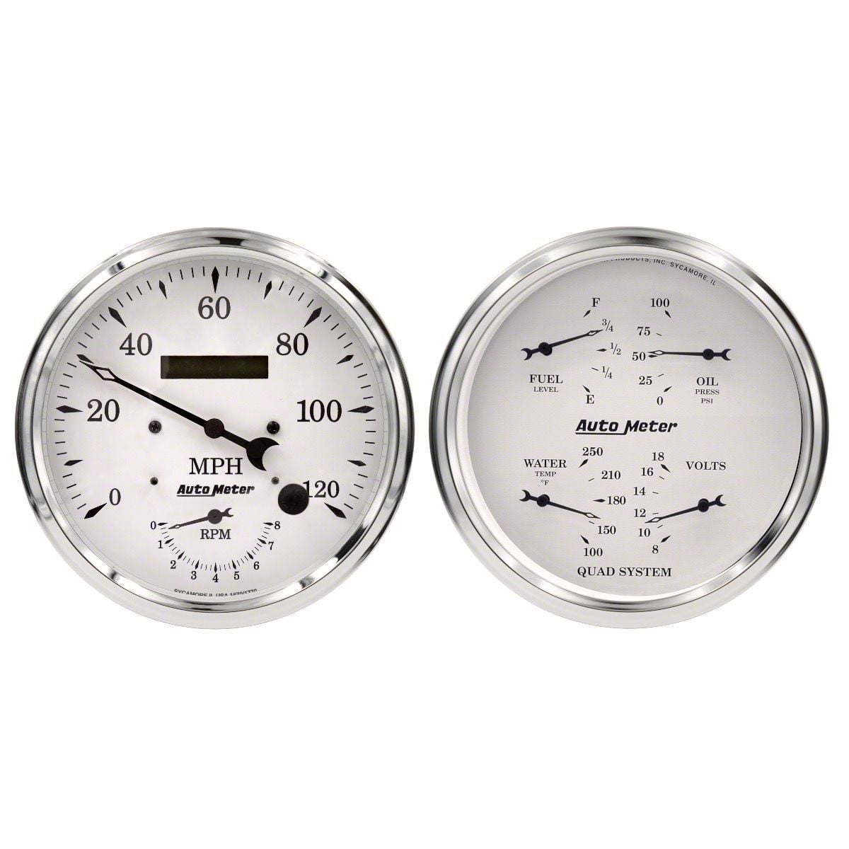DESCRIPTION:The AutoMeter Quad Gauge and Tach/Speedo Combo Kit is the all-in-one solution your dashboard needs. This space-saving kit combines our precise Electronic Tach/Speedo Combo with the durability of our Quad Gauge. Both combo products use the same internal meter movements utilized on our standalone products so you know you’ll enjoy accurate and reliable readings, rapid response, and compatibility with many different applications. Plus, the kit includes a fuel level sender (240E/33F ohm) and a vehicle speed sensor (GM-style) for added convenience. Upgrade your dashboard with AutoMeter's reliable and comprehensive kit.