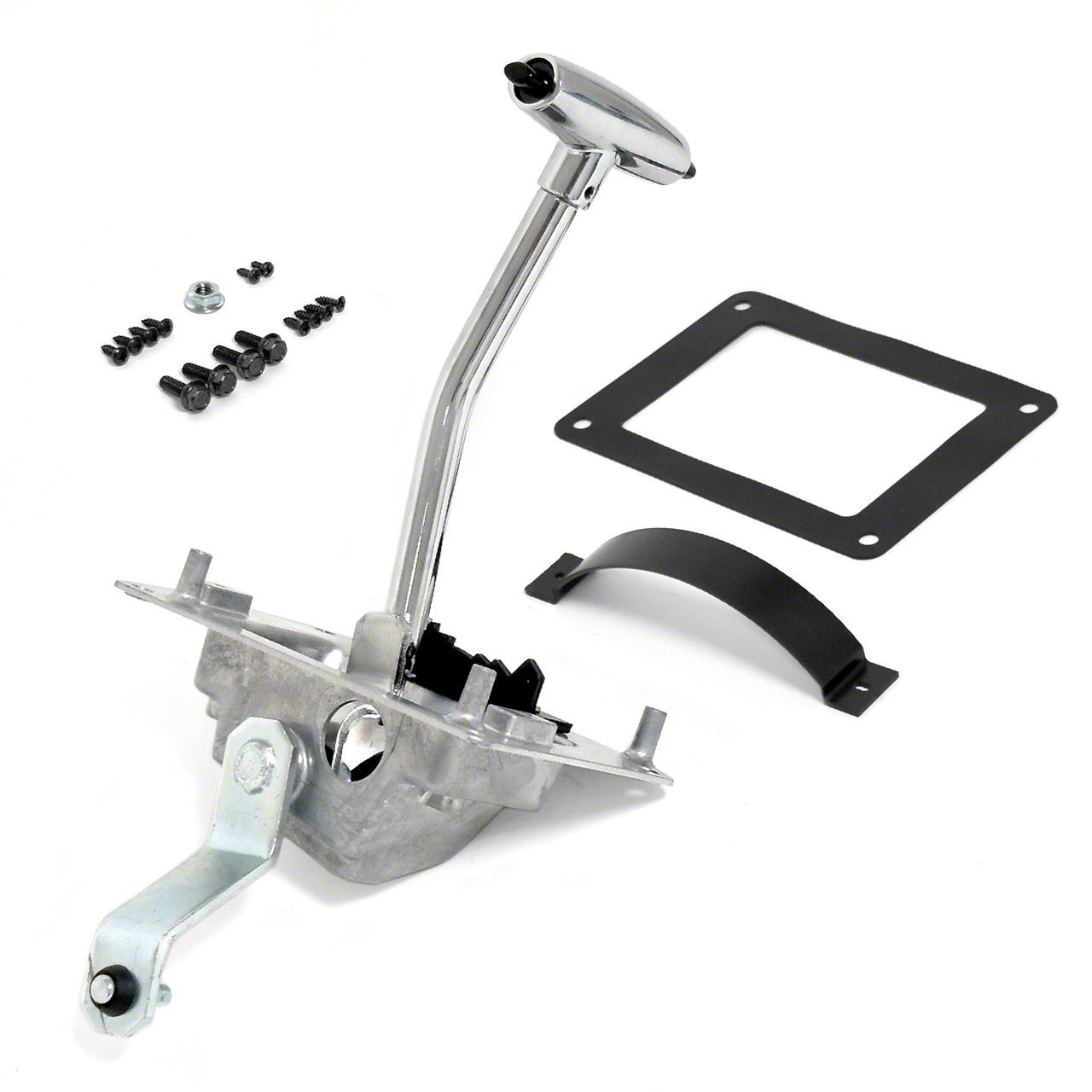 Factory-correct reproduction of the automatic transmission shifter assembly installs through top opening of floor's transmission tunnel