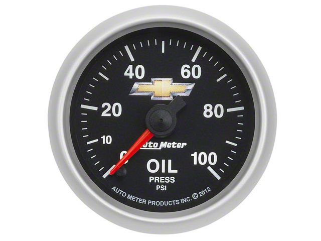 Application. This Auto Meter Oil Pressure Gauge with Chevy Gold Bowtie Logo has a universal fitment.
