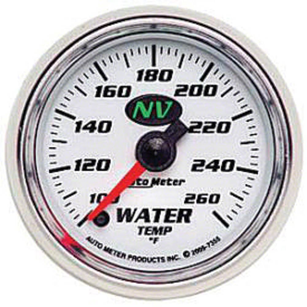 High-Performance Gauge. The Auto Meter NV Series 2-1/16-Inch Water Temperature Gauge; 140-280 Fahrenheit; Mechanical is engineered to provide accurate, fast-responding monitoring of engine water temperature. This gauge helps prevent overheating by enabling drivers to precisely monitor engine temperature, enhancing performance and reliability in demanding conditions.