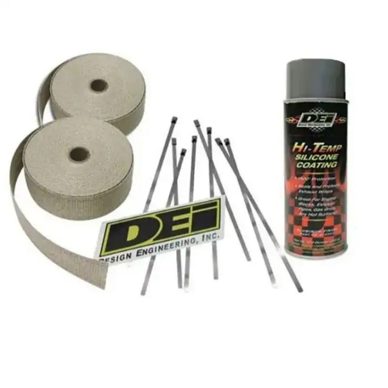 An all-in-one kit for wrapping a set of headers or motorcycle pipes. Automotive kit includes two 2” x 50ft rolls of exhaust wrap one can of HT Silicone Coating & Locking Ties. The header wrap kit is enough for any set of V8 headers. The Header Wrap Kit will wrap from the top of the header where it bolts to the heads all the way down to the collector. Exhaust Wrap Kits save you time and money