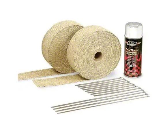 An all-in-one kit for wrapping a set of headers or motorcycle pipes. Automotive kit includes two 2” x 50ft rolls of exhaust wrap one can of HT Silicone Coating & Locking Ties. The header wrap kit is enough for any set of V8 headers. The Header Wrap Kit will wrap from the top of the header where it bolts to the heads all the way down to the collector. Exhaust Wrap Kits save you time and money