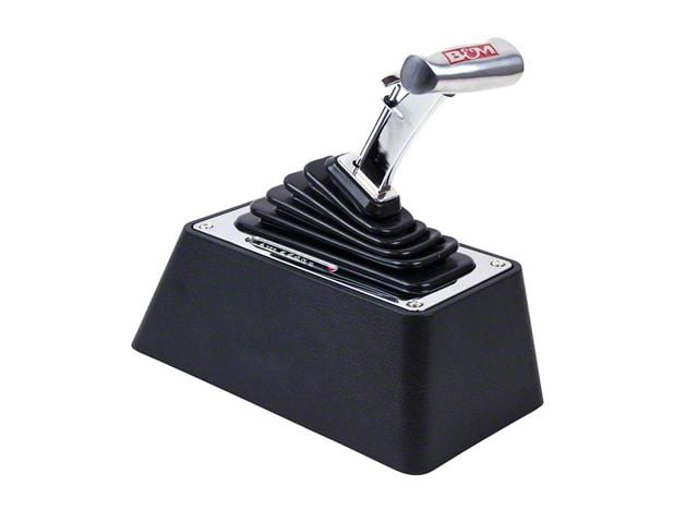 The B&M Megashifter® features a Ratcheting action, ensuring positive shifts. Features include a chrome knob, neutral safety switch and NHRA/IHRA approved reverse lockout. The Megashifter® fits most 3 and 4 speeds. The kit includes shifter assembly, built-in neutral safety switch, back-up light switch, lighted indicator, and hardware.