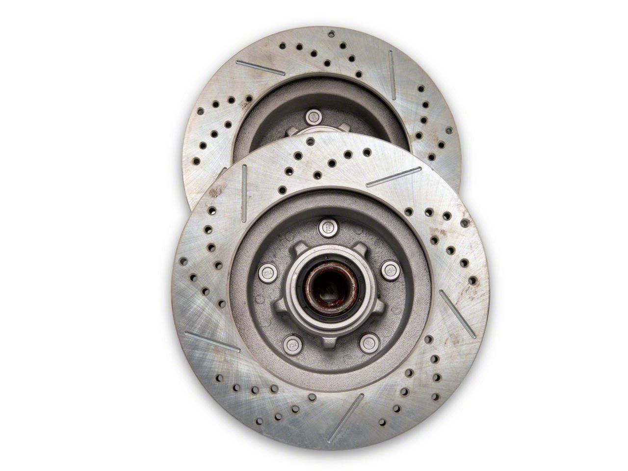 This system features the "Original" Baer 2-piston, pad guided caliper (PGC) mounted to a 11", 1-piece slot, drill, zinc plated integral hub rotor. The PGC caliper comes in a red powder coated finish with a black logo, includes dust/weather seal's and uses the popular D412 pad type. The system includes premium bearings with races pre-installed, dust caps, mounting brackets, stainless braided hoses and all necessary hardware. The 11" "Classic" system fits select 15" or larger wheels. **Widens track width approx. 1" per side.**