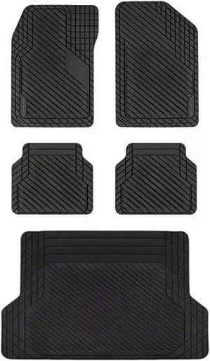 Construction and Appearance. Manufactured from 100% recyclable TPE material, these mats are built to last, offering consistent performance due to their injection-molded construction. Their sleek, black finish adds an ultramodern touch to your vehicle's interior, and the contoured three-dimensional design channels debris into reservoirs for easy cleanup.