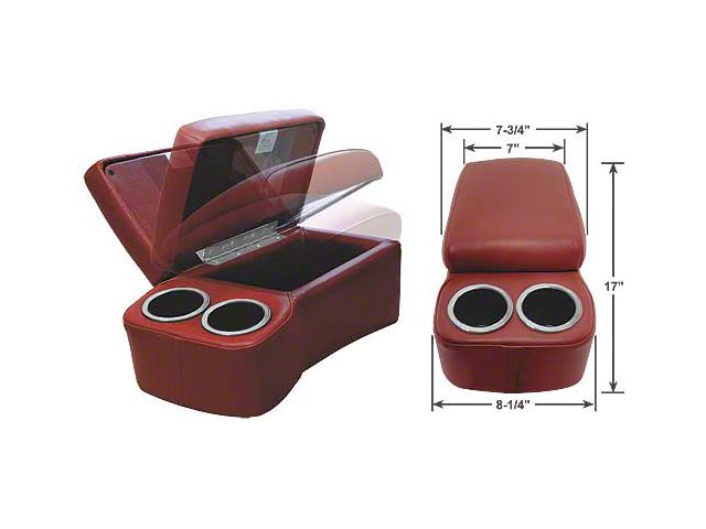 One of the most practical products we've ever offered - The BC Seat Cruiser - is now available in a new, slightly smaller size. Compared to the original BC Cruiser, which is 11" wide at the front, the BD Drinkster is only 8-1/4". The storage compartment in the BC Cruiser is 8-1/2" wide, while the BD Drinkster is 7-3/4" at the front narrowing down to 7" at the rear, allowing you a bit more hip room. Slightly smaller but just as useful! Both have a softly padded hinged top that opens to reveal a spacious storage compartment, a sewn-in strap that allows you to secure the console to the seat, chrome accents on the cup holders and both are available in a dozen beautiful colors.