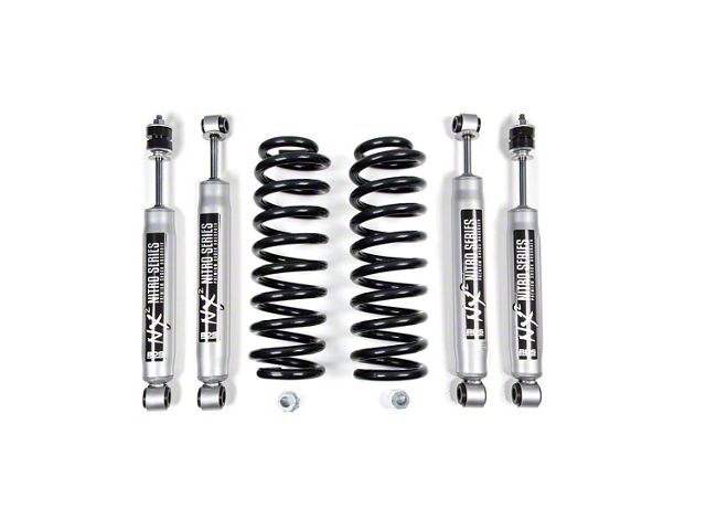 Up front the lift kit includes Pro-Ride coil springs, adjustable alignment cams, and custom-tuned nitrogen charged shocks. In the rear this kit utilizes a matching set of NX2 Nitro shocks.