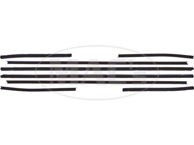 These are replacement style belt weatherstrip kits. They do not have the wide mouldings that were originally installed by the factory. The original wide mouldings with integral belt weatherstripping are not available. Use these kits to replace the belt weatherstripping on your original mouldings.