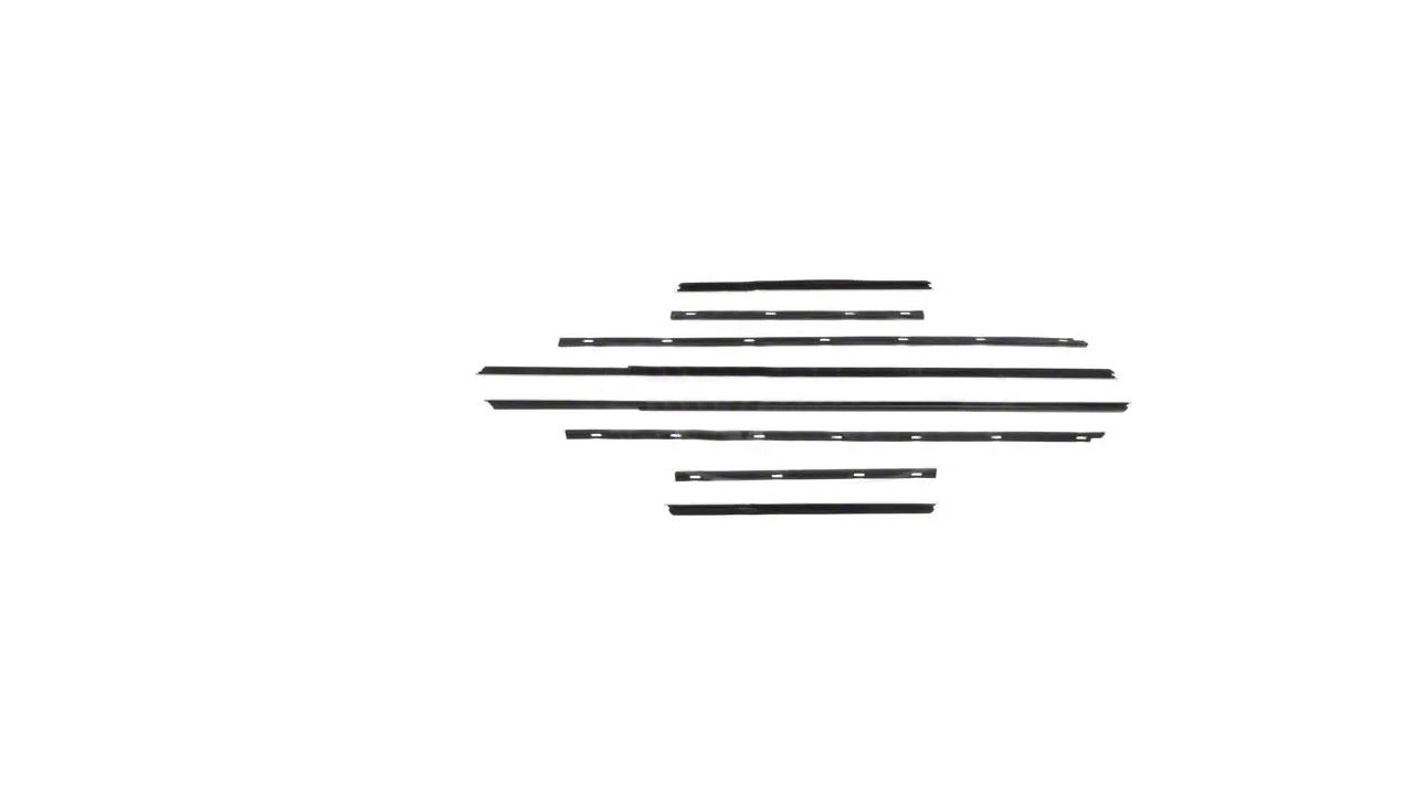 These are replacement style belt weatherstrip kits. They do not have the wide mouldings that were originally installed by the factory. The original wide mouldings with integral belt weatherstripping are not available. Use these kits to replace the belt weatherstripping on your original mouldings.
