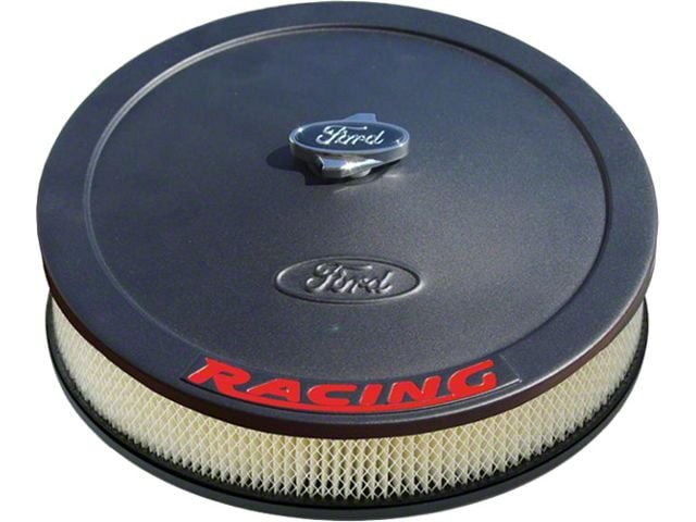 The air cleaner is one of the most visible parts on a car's engine, so now is the time to add a premium Ford RACING emblem to your ride for the perfect customized look! These 13'' diameter air cleaners fit 2V and 4V carburetors, and are supplied with a 2-5/8'' high Motorcraft filter element. Both the tops and bases have matching finishes, and each kit is supplied with necessary mounting hardware. Air cleaner kits are supplied with special die-cast Ford Oval center nuts. For all of your classic Ford needs, you can always count on MAC's.