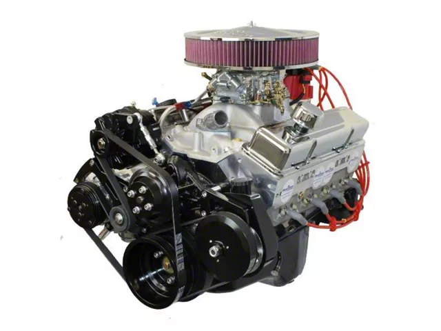Application. This BluePrint Engines Small Block Chevy 350 C.I. 341 HP Deluxe Dressed Carbureted Crate Engine with Black Pulley Kit is engineered for universal applications.