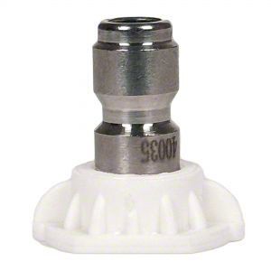 Experience unparalleled precision and versatility with the BluShield 3.5 Orifice 40° Quick Disconnect Pressure Washer Spray Tip. Engineered to meet your specific spray pattern needs, this quick disconnect spray tip revolutionizes adaptability in pressure washing. The 40° spray angle, marked by its distinct white color, is meticulously designed for surfaces and equipment that require a gentle touch, such as painted finishes. This white 40° spray tip ensures optimal results while preserving the integrity of delicate surfaces.Seamlessly integrating into your workflow, this spray tip connects directly to pressure washer wands equipped with a 1/4" quick disconnect socket, simplifying your tasks. The quick disconnect feature offers unmatched flexibility, allowing you to select the perfect spray pattern for every application, enhancing precision and efficiency.