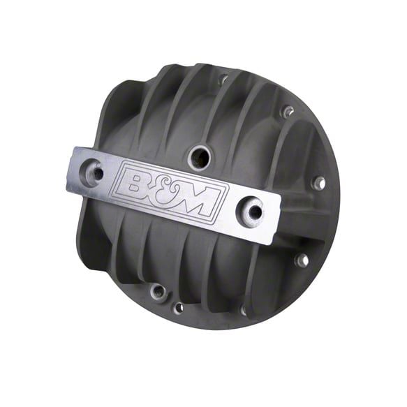 Our engineers designed the line of Hi-Tek differential covers to not only look good but address a number of weaknesses of the factory-stamped steel covers. First, they started by constructing the covers of thick A356.0-T6 aluminum, which dissipates heat much faster than the factory steel unit keeping the fluid temperature lower under high-stress loads vs. a steel cover. Then for added durability, we added a reinforced center bar for extra strength along with load bolts to help prevent bearing cap deflection under severe loads. The internal shape of the cover retains the smooth round back internally to help keep the fluid flow going over the ring gear to properly lubricate the gears and bearings. Additional features include a magnetic drain plug for catching ferrous metal particles, a machined B&M logo and all necessary hardware, and easy-to-follow detailed instructions for a quick and simple installation you can do at home.