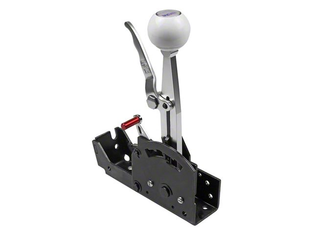 Construction and Features. Crafted with a matte black, polished chrome, and clean white finish, this shifter boasts a durable construction. It is compatible with Powerglide transmissions using a forward shift pattern and includes a 5-foot super duty shift cable, cable bracket, PG Pro lever, and all necessary installation hardware. The shifter's compact design, sized at 8.25L x 2.92W x 9.25H inches, fits neatly into the vehicle's interior.